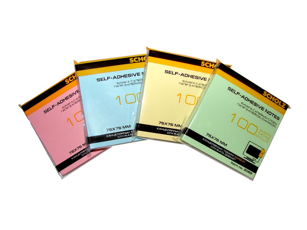 Блок паперу для записів клейкий 76х76мм від ТМ SCHOLZ. Клейова смуга розрахована на кріплення до будь-якої поверхні, дозволяє приклеювати аркуш необмежену кількість разів, не залишаючи слідів. У блоці 100 аркушів.