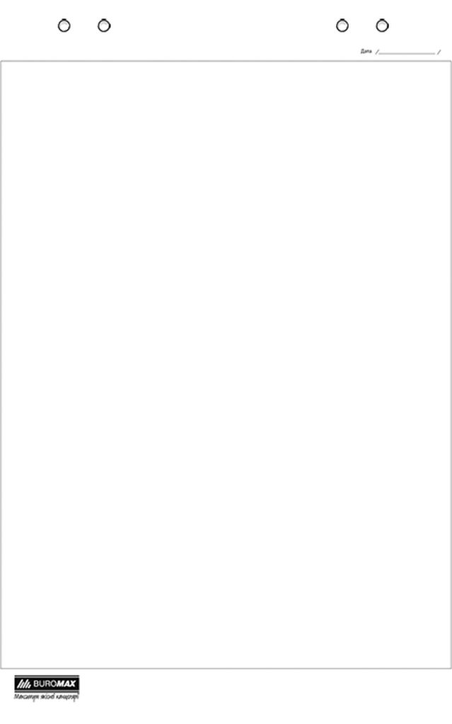Блок бумаги для флипчарта плотностью 70г/м2 от ТМ BUROMAX. Блок из 10 листов проклеен сверху, имеет отверстия для крепления на флипчарт. Размер блока - 900х640мм.