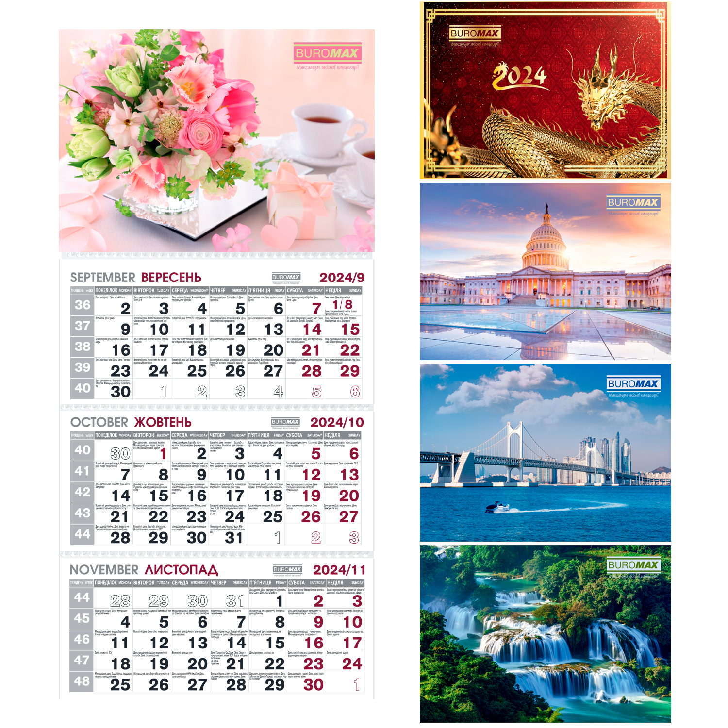 Календарная сетка на трех языках: украинском, русском, английском