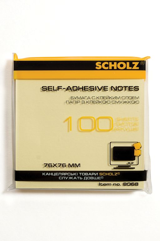 Стикеры для записей 76х76мм от ТМ SCHOLZ. Клеевая полоса рассчитана на крепление к любой поверхности, позволяет приклеивать листок неограниченное количество раз, не оставляя следов. В блоке 100 листов.