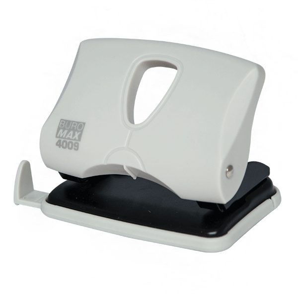 Дырокол BUROMAX с пробивной мощностью 20 листов бумаги 80г/м2. Размер: 127х81х48мм; металлическая подошва, пластиковый рычаг с прорезиненной вставкой, линейка с форматной шкалой.