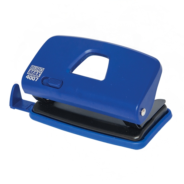 Дырокол BUROMAX с пробивной мощностью 10 листов бумаги 80г/м2. Размер: 100х63х60мм; металлическая подошва, пластиковый рычаг с прорезиненной вставкой, линейка с форматной шкалой.