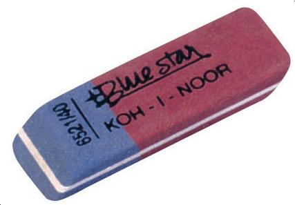 Комбинированный ластик "Blue star" из натурального каучука содержит красную сторону - мягкую, для стирания следа карандашей твердости 8B - 10H и синюю, которая содержит абразивные вещества для стирания следа ручек, цветных карандашей, чернил.