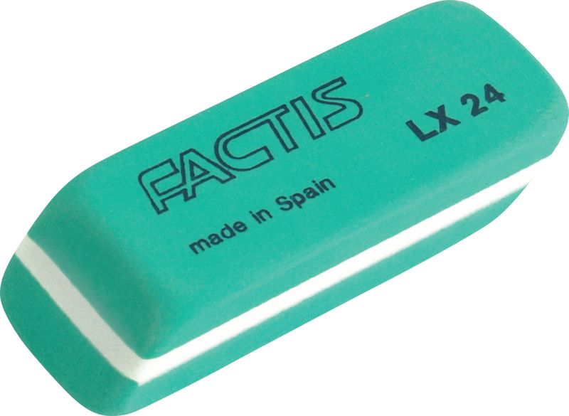 Трехслойный прямоугольный ластик из яркого цветного пластика со скошенными краями, которые помогают на небольших участках поверхностей. Наиболее эффективный для точного удаления контуров и штрихов, сделанных карандашами различной твердости и перманентными чернилами.