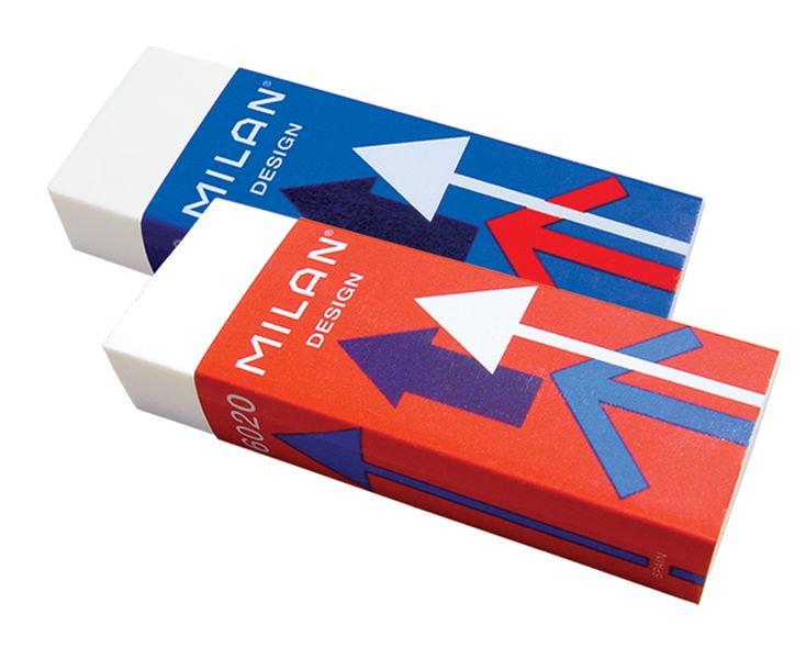 Мягкий прямоугольный ластик MILAN в индивидуальной упаковке для твердо-мягкого (НВ) графитового карандаша. Удаляет перманентные чернила с гладкой поверхности, предназначен для профессиональных художников