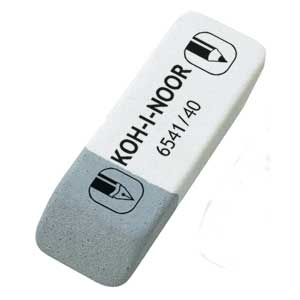 Комбинированный ластик "Sunpearl" из натурального каучука содержит две стороны: белую и серую. Белая сторона - мягкая, предназначена для стирания следа карандашей 8B-10H, а серая - абразивная, для стирания следа туши, чернил ручки, печатной машинки и цветных карандашей.