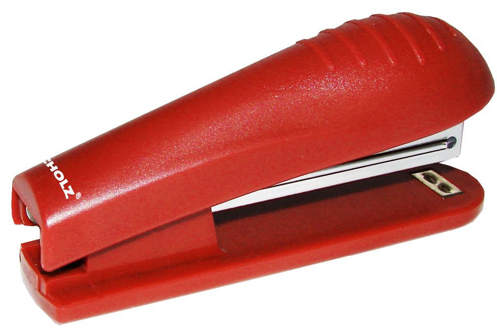 Степлер Scholz изготовлен из пластика, с надежным металлическим механизмом. Окошко контроля наличия скобы.