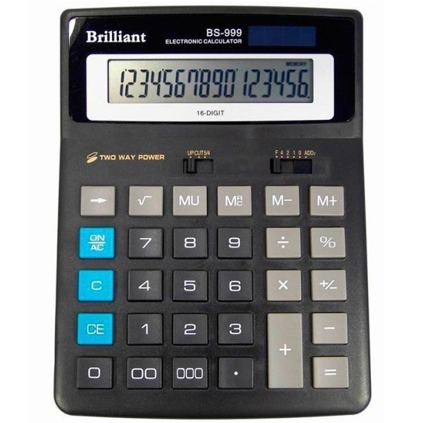 "Калькулятор настольный 16-ти разрядный, двойное питание, одноуровневая память. Функции: удаление последнего символа, клавиша ""00"",клавиша ""000"",клавиша знака числа, корень, проценты.