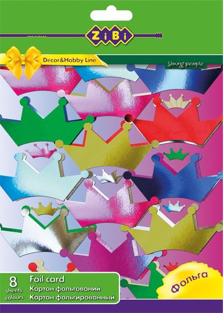 Набір кольорового картону фольгованого А4, 8 арк., 8 кольорів ZB.1960